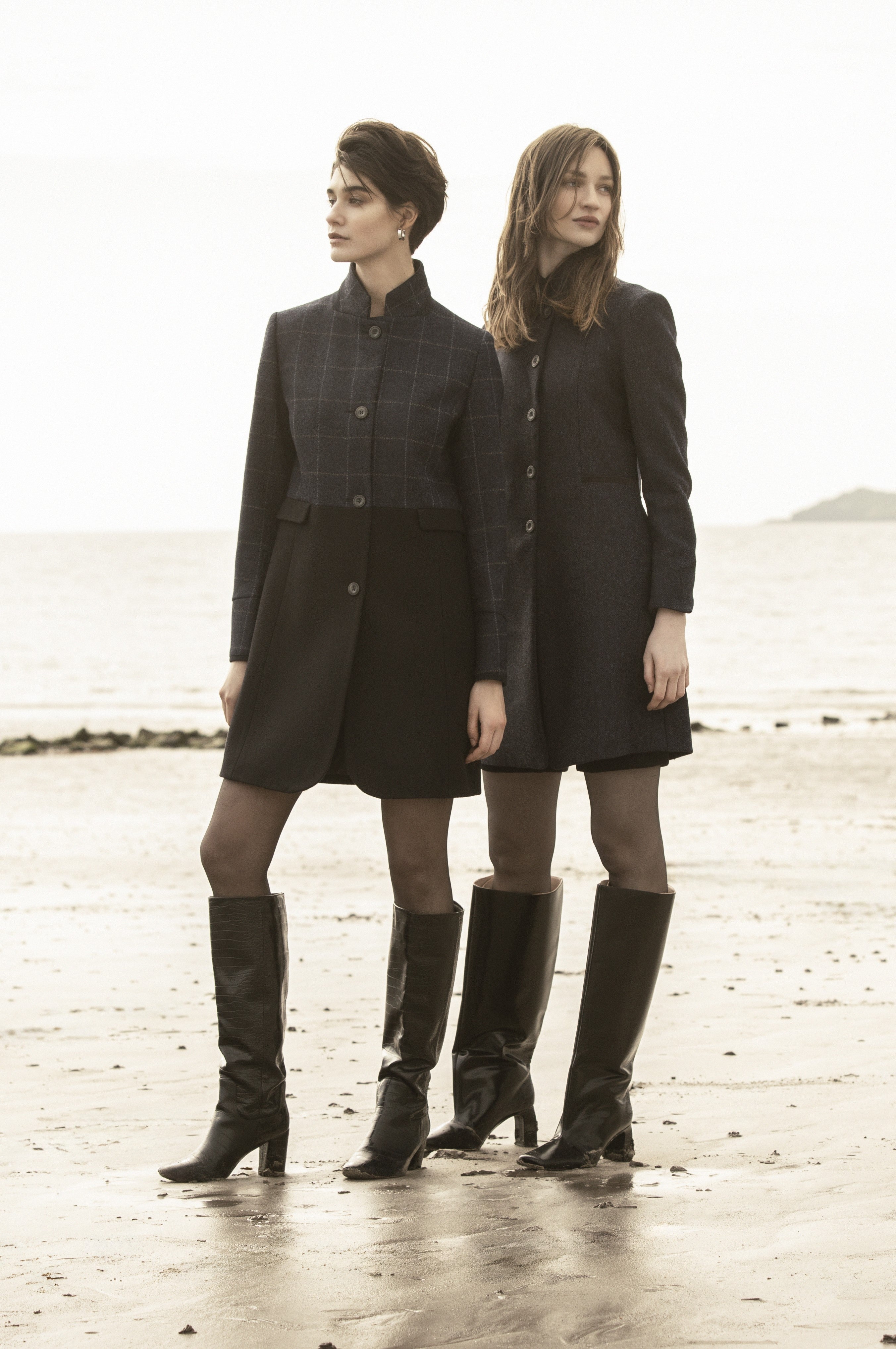 Manteau Shauna en tweed - Chevrons gris Donegal